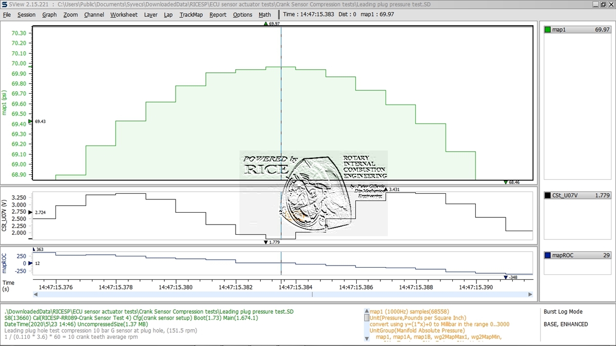 Here I same idea of logging the crank wheel I made up and a Syvecs pressure sensor (of appropriate range) to do a non running or roughly cranking speed engine TDC indirect measure, as its on a total shit box of an engine (Wanker or Wankel) :) there are a few caveats but once you do some testing its repeatable and an alternate method where direct measurement is not possible ;)